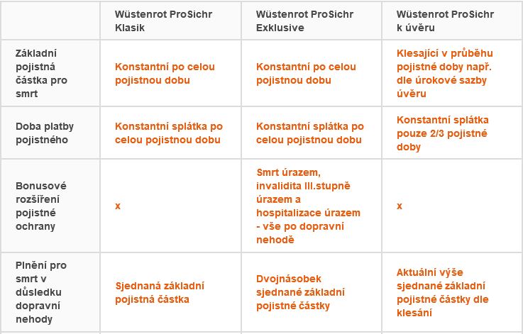 Wüstenrot ProSichr je rizikové životní pojištění pro případ smrti. Základní pojistnou ochranu lze rozšířit připojištěními. Jedním z nich je zproštění od placení pojistného v případě pracovní neschopnosti nebo přiznání invalidity třetího stupně. Po uplynutí pojistné doby není vyplaceno žádné plnění (produkt neumožňuje zhodnocení finančních prostředků).
